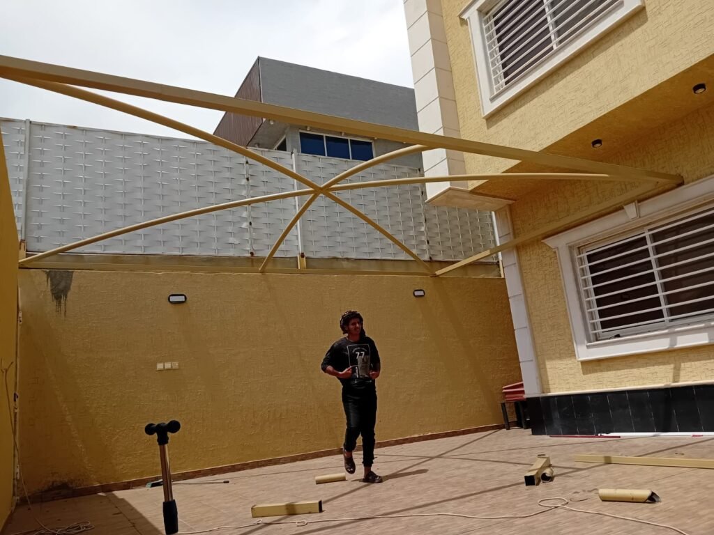 ستلاحظ الفرق في دقة التنفيذ وجودة التشطيب، حيث يتم الاهتمام بأدق التفاصيل مثل اللحام، تثبيت الأعمدة، وضبط الزوايا بشكل احترافي يضمن ثبات المظلة ومظهرها الجمالي. كما يتم استخدام أدوات حديثة وتقنيات متطورة في القص والتركيب، مما يساهم في تسريع العمل دون التأثير على الجودة.